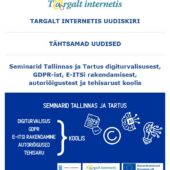 Oktoobri koolivaheajal toimuvad Tallinnas ja Tartus kolm Targalt internetis seminari, mille fookuses digiturvalisus, GDPR, E-ITSi rakendamine, autoriõigused ja tehisaru koolis. Oodatud on eelkõige haridustehnoloogid, koolijuhid, IT-juhid ja informaatikaõpetajad, aga huvi korral ka teised üldhariduskoolide õpetajad ja teemade eest vastutajad. Registreerunutele on osalemine tasuta, sh lõuna ja kohvipausid. All pool leiate seminaride päevakava ja registreerumislingid. 20.…