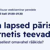 30. septembril kell 19.00-19.30 oodatakse vanemaid koos lastega kuulama tasuta veebiseminari, kus eksperdid aitavad leida laste internetikasutusega seotud küsimustele vastuseid. Veebiseminaril räägitakse, kuidas seada internetikasutusele piire nii, et need ei tekitaks vastasseisu ja mismoodi saada hakkama survega olla internetis. Kuidas eristada lapse tegelikku vajadust kuuluda ja suhelda sotsiaalmeedias sellest, et “kõik teised on seal”? Mida… -