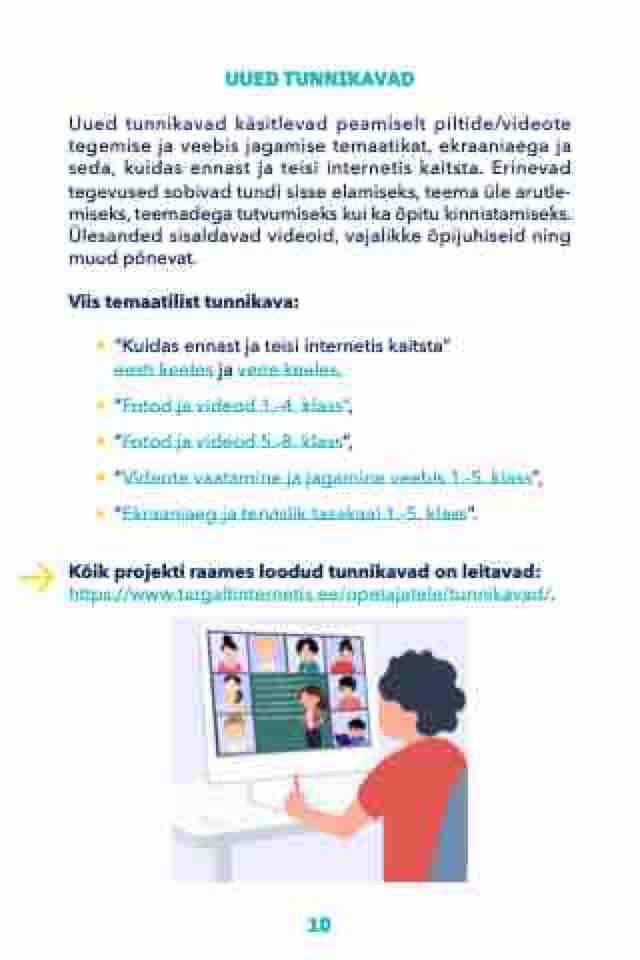 Uued tunnikavad käsitlevad peamiselt piltide/videote tegemise ja veebis jagamise temaatikat, ekraaniaega ja seda, kuidas ennast ja teisi internetis kaitsta. Erinevad tegevused sobivad tundi sisse elamiseks, teema üle arutle- miseks, teemadega tutvumiseks kui ka õpitu kinnistamiseks. Ülesanded sisaldavad videoid, vajalikke õpijuhiseid ning muud põnevat.
