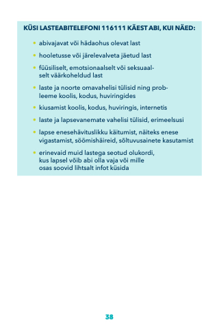 • erinevaid muid lastega seotud olukordi, kus lapsel võib abi olla vaja või mille osas soovid lihtsalt infot küsida
