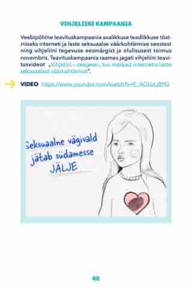 Veebipõhine teavituskampaania avalikkuse teadlikkuse tõst- miseks interneti ja laste seksuaalse väärkohtlemise seostest ning vihjeliini tegevuse eesmärgist ja olulisusest toimus novembris. Teavituskampaania raames jagati vihjeliini teavi- tusvideot „Vihjeliin – reageeri, kui märkad internetis laste seksuaalset väärkohtlemist“.