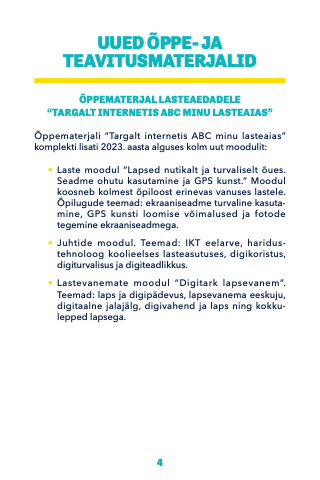 Õppematerjali “Targalt internetis ABC minu lasteaias” komplekti lisati 2023. aasta alguses kolm uut moodulit: