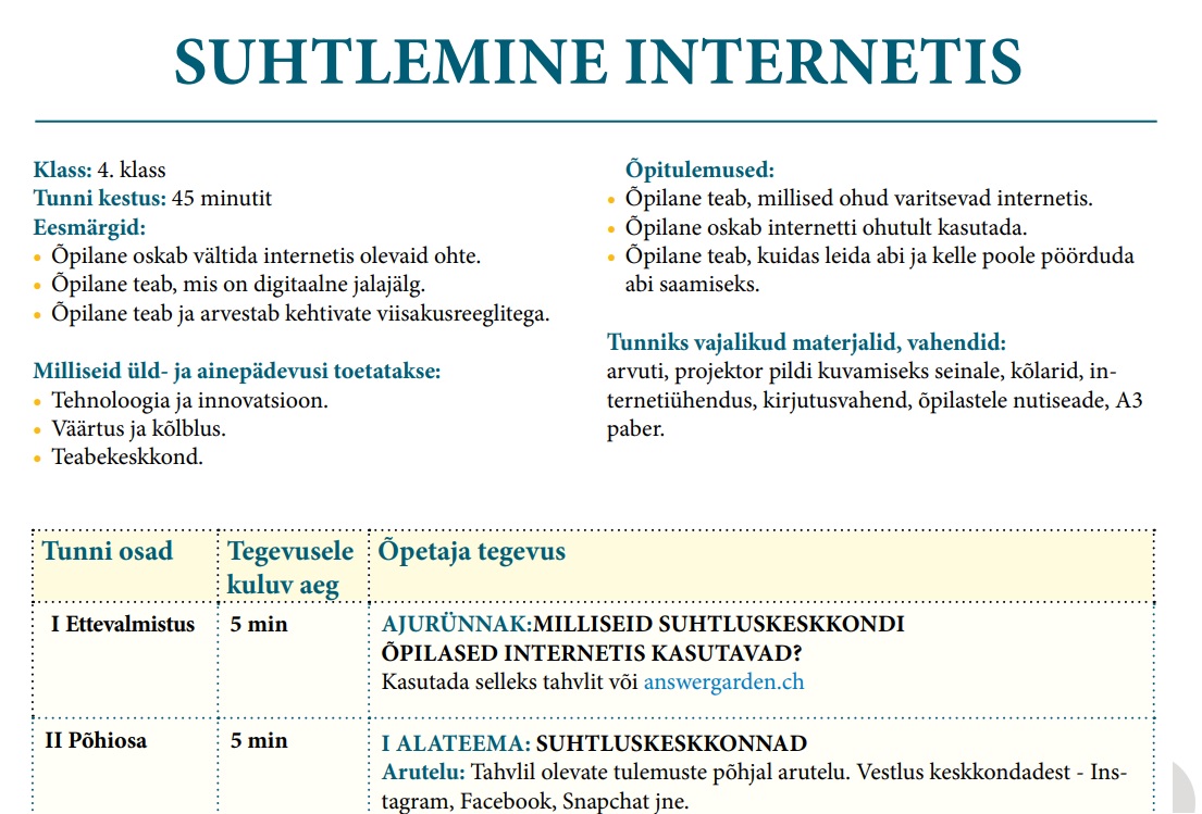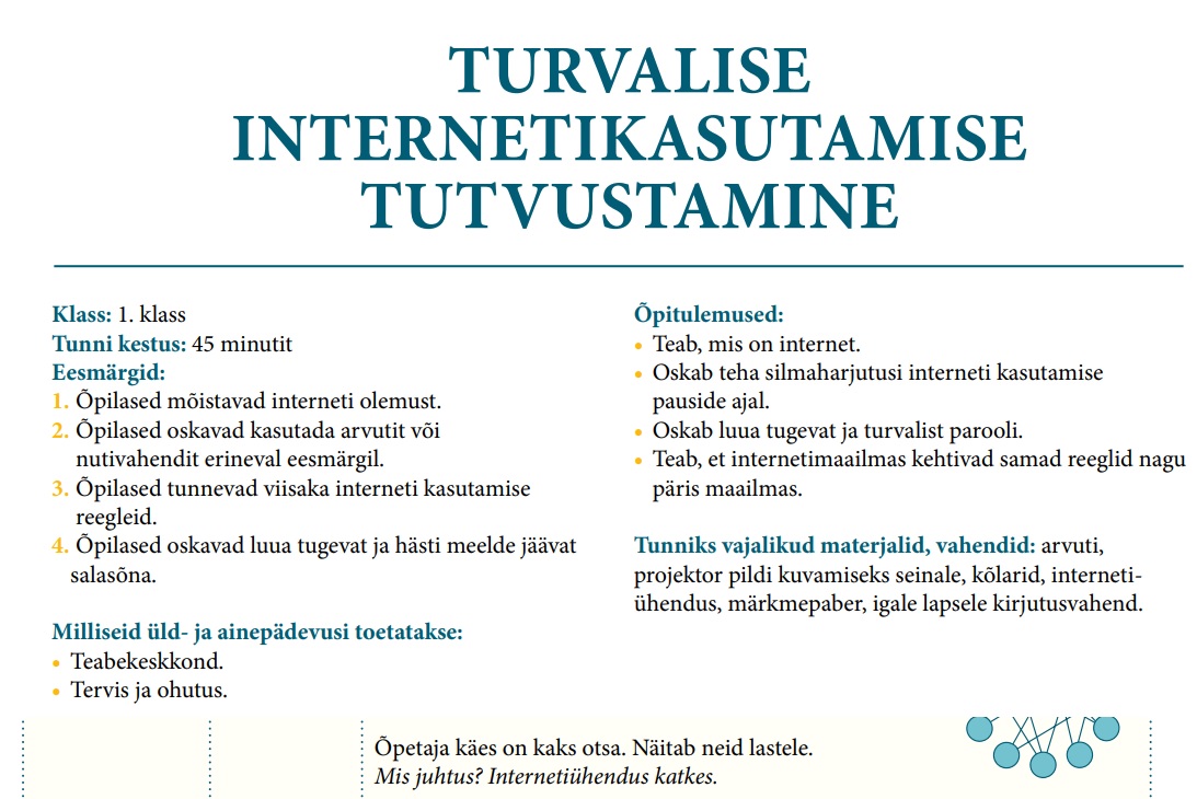 Loodame, et leiate siit palju kasulikku materjali ning meie ühise töö kaudu suurenevad õpilaste teadmised interneti ja digitaalsete kommunikatsioonivahendite turvalisest, tervislikust ja vastutustundlikust kasutusest.