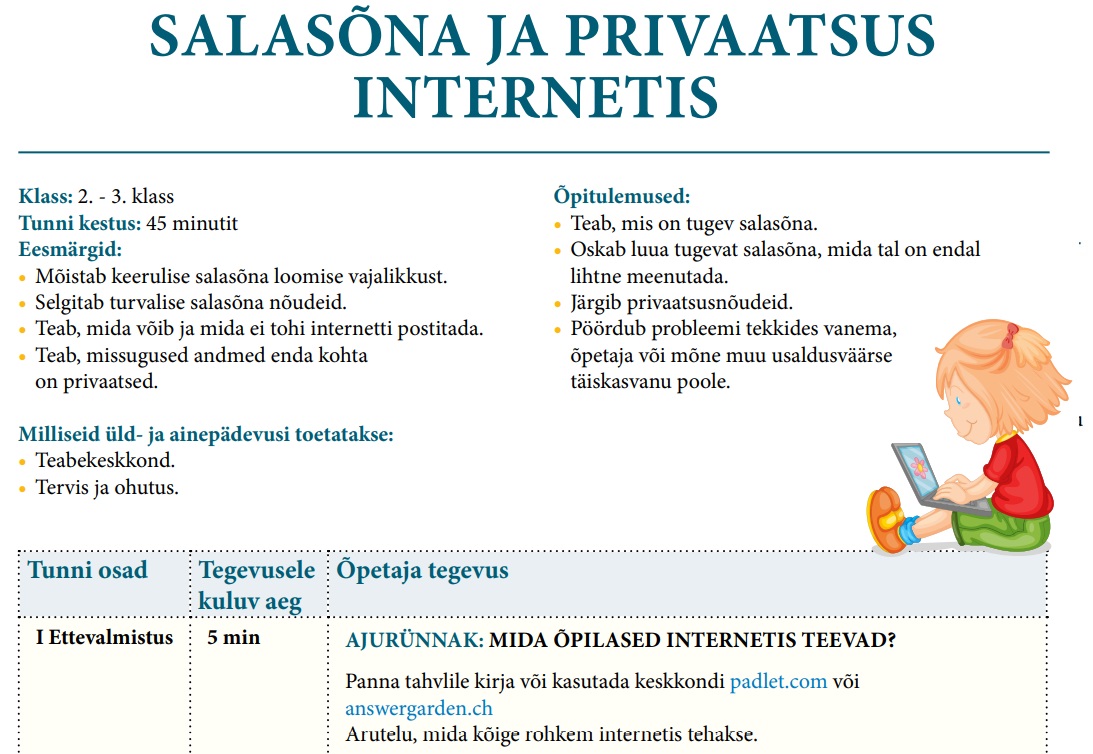 Targalt internetis tunnikava “Salasõna ja privaatsus internetis”  (2.-3. klass)