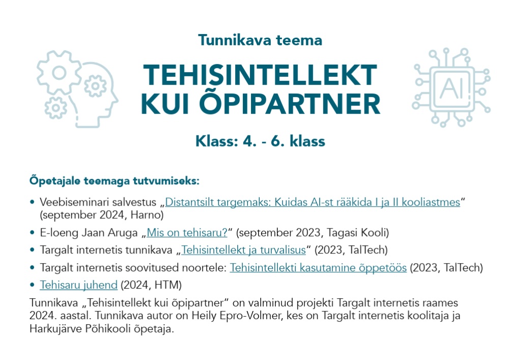 UUS! Targalt internetis tunnikava Tehisintellekt kui õpipartner 4-6 klass