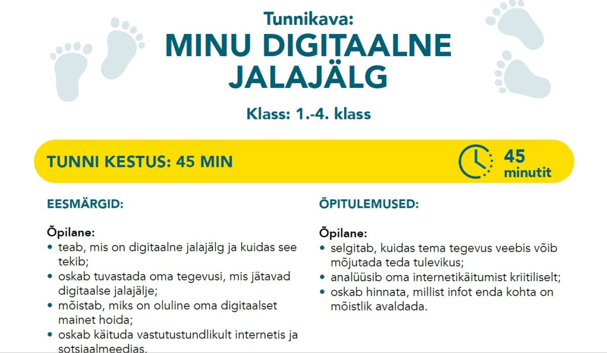 UUS! Targalt internetis tunnikava: “Minu digitaalne jalajälg” (5.-9. klass)