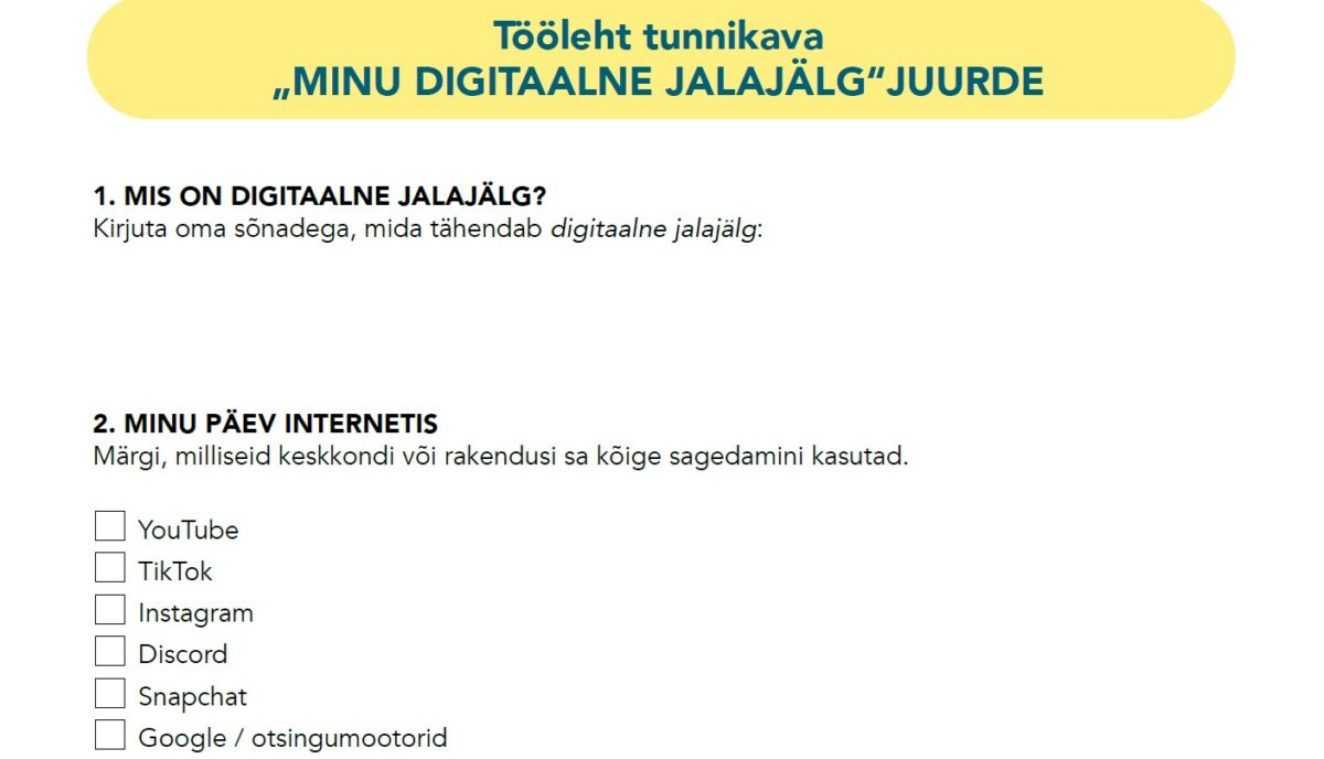 Täidetakse töölehte Minu digitaalne jalajälg