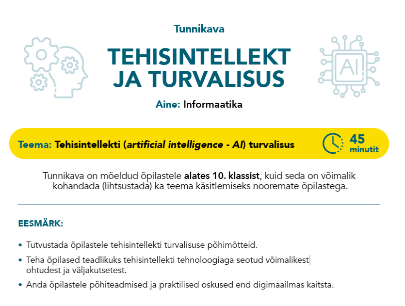 - Targalt internetis tunnikava “Tehisintellekt ja turvalisus” 10.-12.klass