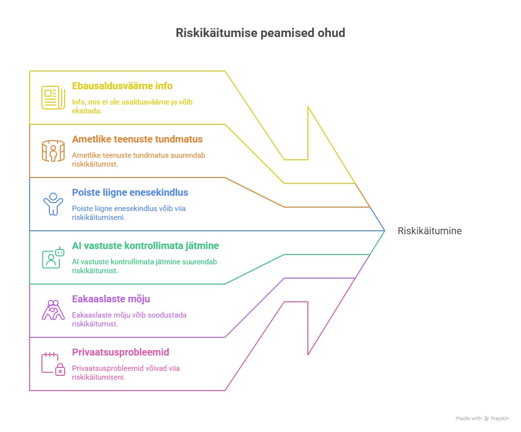 Tüdrukud tajuvad AI riskikohti märksa teravamalt kui poisid. Nad toovad välja nii valeinfo leviku, isikuandmete jagamise ohu kui ka mure selle pärast, et AI võib mõjutada noorte enesehinnangut, eriti visuaalse sisuloomega seoses. Poisid näevad tehisaru kasutust sagedamini kui loomulikku eksperimenteerimist ja tehnilist väljakutset ning tajuvad ohtu pigem tehnilise kuritarvitamise vaates – näiteks deepfake’ide või paroolide murdmise võimalusena. Selline erinevus näitab, et tüdrukud lähenevad AI-le pigem sotsiaalse ja emotsionaalse tundlikkusega, poisid aga tehnilise huvi ja avastamisjulgusega. Mõlemad pooled näevad riske, kuid neid vaadeldakse erinevatest suundadest.