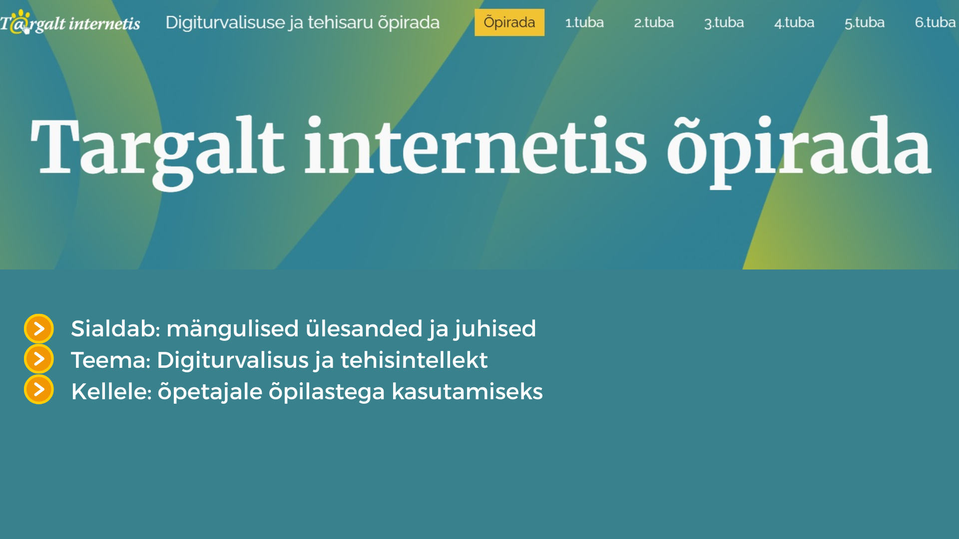 Targalt internetis õpirada “Digiturvalisus ja tehisaru” on interaktiivne õppematerjal, mille peamine eesmärk on harida kasutajaid tehisaru ja digiturvalisuse teemadel, arendades mängulisel viisil õpilaste kriitilist mõtlemist, meediakirjaoskust ja probleemilahendusoskusi.