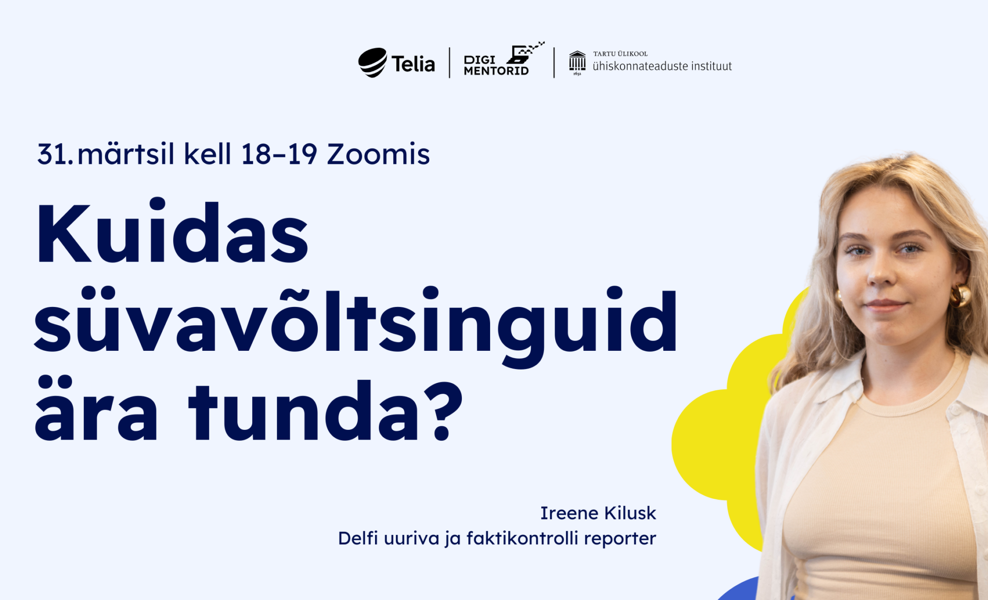Veebiseminar toimub Telia ja TÜ ühiskonnateaduste instituudi projekti Digimentorid raames. Vaata lähemalt: meedia.ut.ee